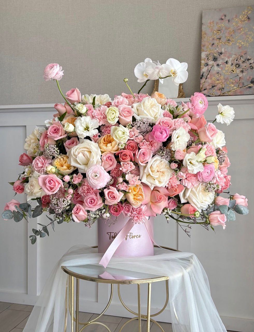Los arreglos más destacados de nuestra colección: deslumbrantes composiciones florales cuidadosamente dispuestas en distintos tipos de bases. Aquí encontrarás nuestros bouquets más grandes, espectaculares y memorables, diseñados para sorprender con su tamaño, estilo y elegancia.
